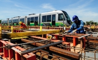 Obras em andamento da Ponte que liga Cuiabá e Várzea Grande