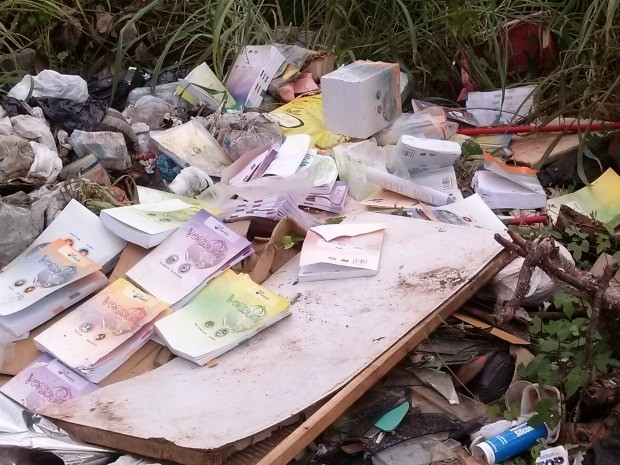 Ainda não se sabe quem teria descartado esse material no local. Os livros são de matérias como língua estrangeira, biologia, química e sociologia.
