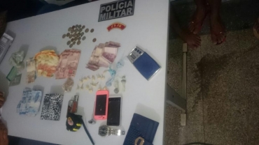 Já no interior da residência foram apreendidas 60 gramas de pasta base de cocaína, seis porções de maconha e 15 de cocaína embaladas para o comércio, além de dinheiro e aparelhos celulares. O terceiro acusado também foi preso na residência.