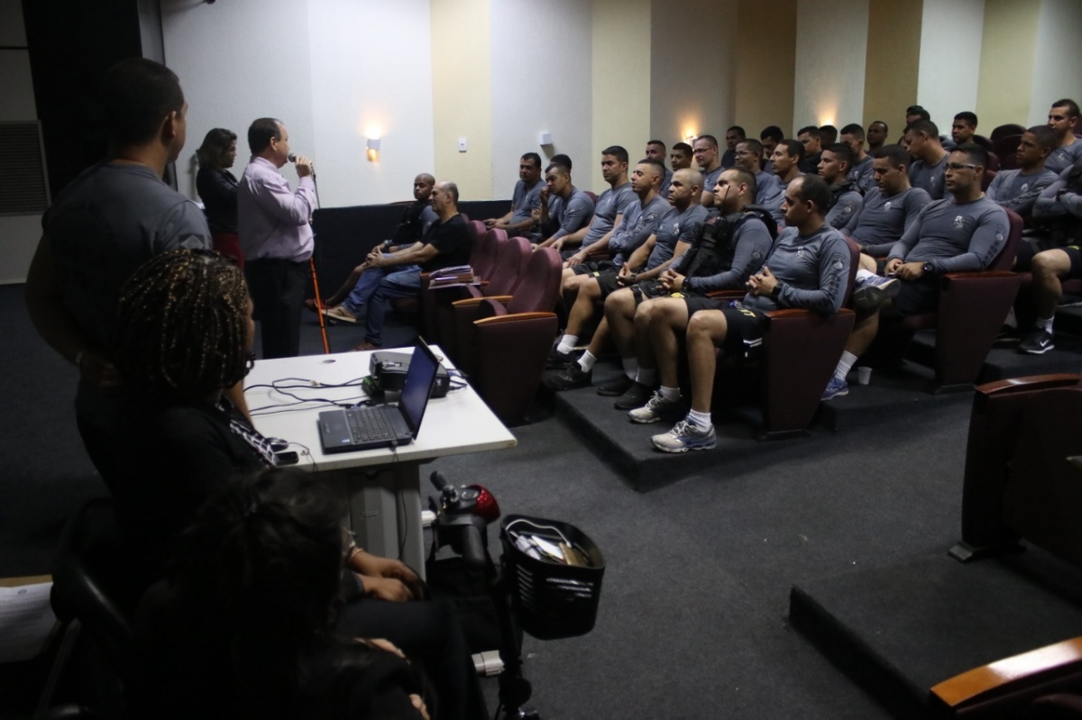 Na manhã desta segunda-feira (15.07) policiais da Força Tática do 1º Comando Regional de Cuiabá trocaram experiências com pessoas com deficiência sobre abordagem policial. O minicurso promovido pela Superintendência da Pessoa com Deficiência da Casa Civil, em parceria com a Polícia Militar, foi realizado no auditório do Departamento Estadual de Trânsito (Detran), em Cuiabá.