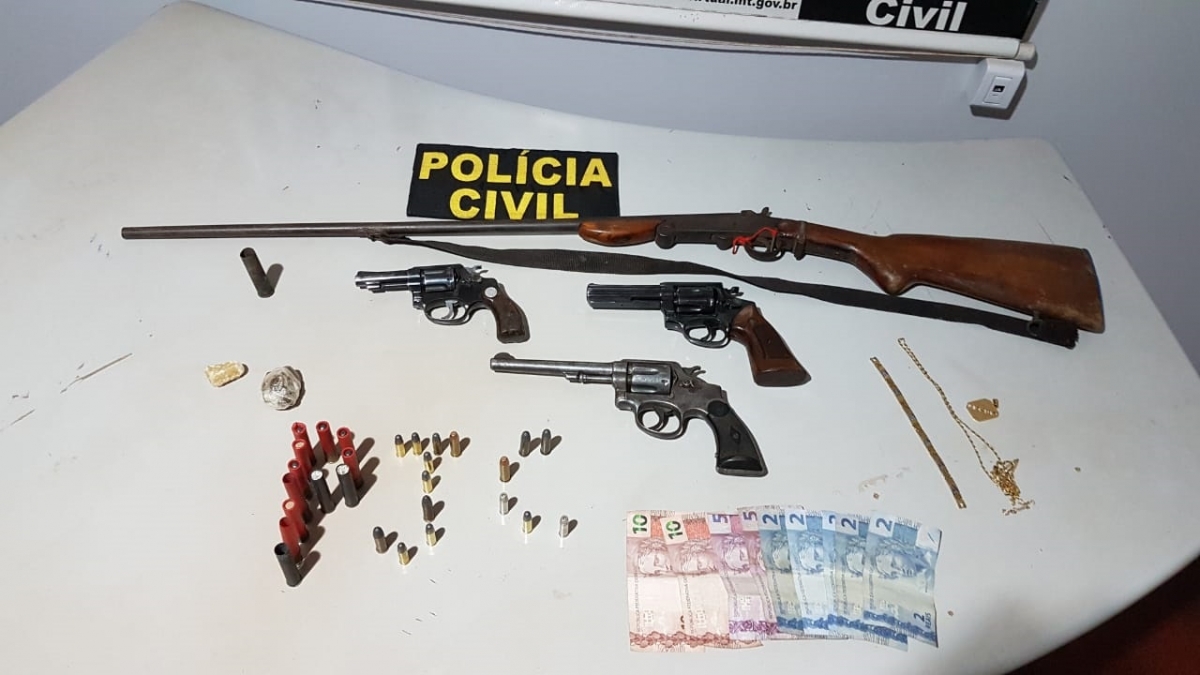 Quatro integrantes de uma organização criminosa com extensas fichas criminais foram presos, pela Polícia Judiciária civil, na tarde de segunda-feira (05.08), no município de Poxoréu (251 km ao Sul). Com os suspeitos foram apreendidas quatro armas de fogo, entorpecentes, munições e algumas joias.