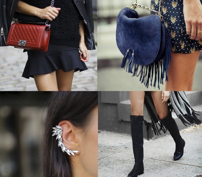 Quanto aos acessórios, os óculos redondos assumem o papel de coadjuvantes inspirando uma tendência mais retrô aos looks modernos. Os cintos de couro com tachas em metal ainda perduram para as próximas estações. Já em relação às bolsas, destaca os detalhes de alças tipo trissê. Chapéus também aparecem com muita força entre os acessórios.